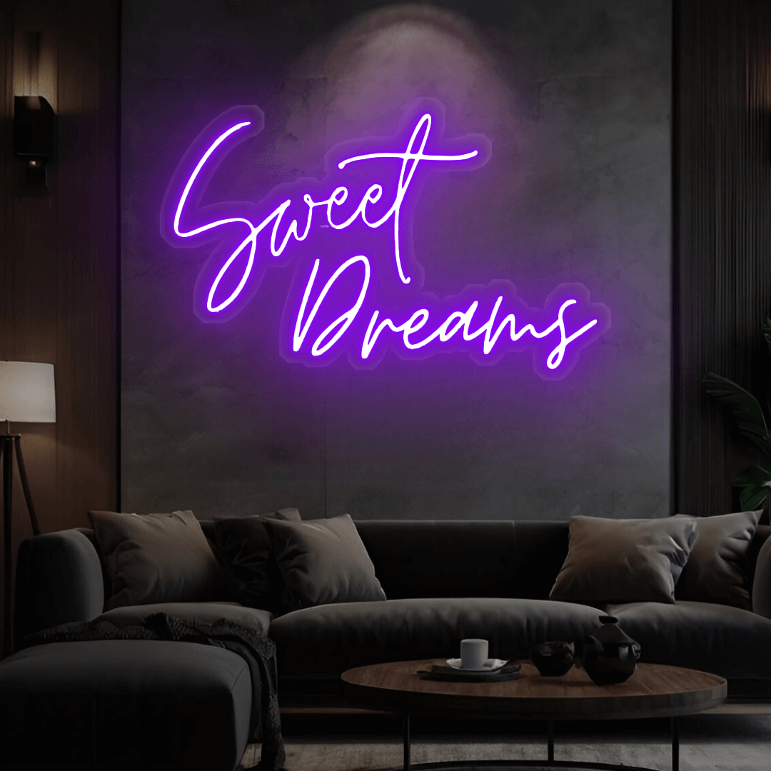 Unser beliebtes Neon-Design „Sweet Dreams“ ist in vielen Variationen erhältlich. Sollten Sie spezielle Wünsche haben, passen wir Ihr Schild ganz individuell an Ihre Vorstellungen an – für einen einzigartigen Look, der perfekt zu Ihnen passt.