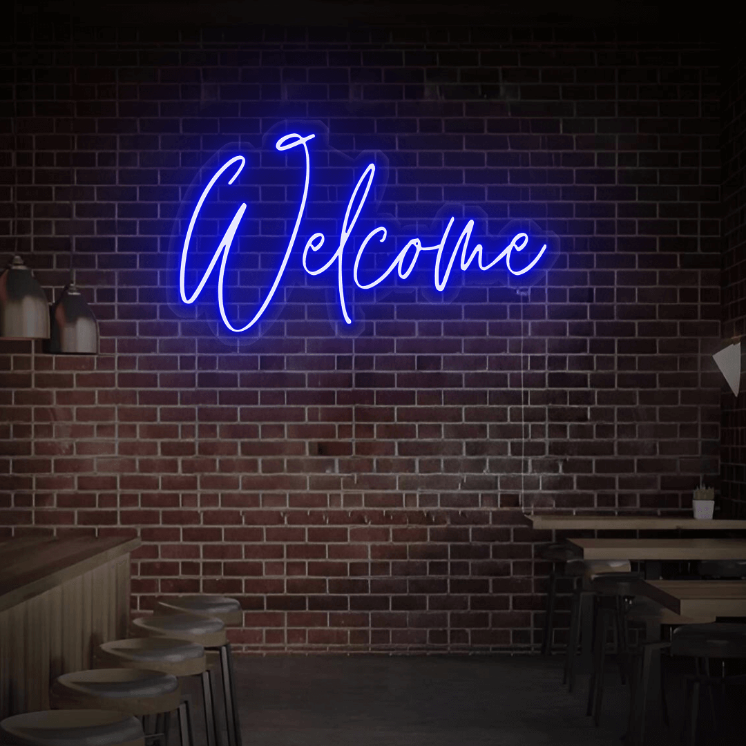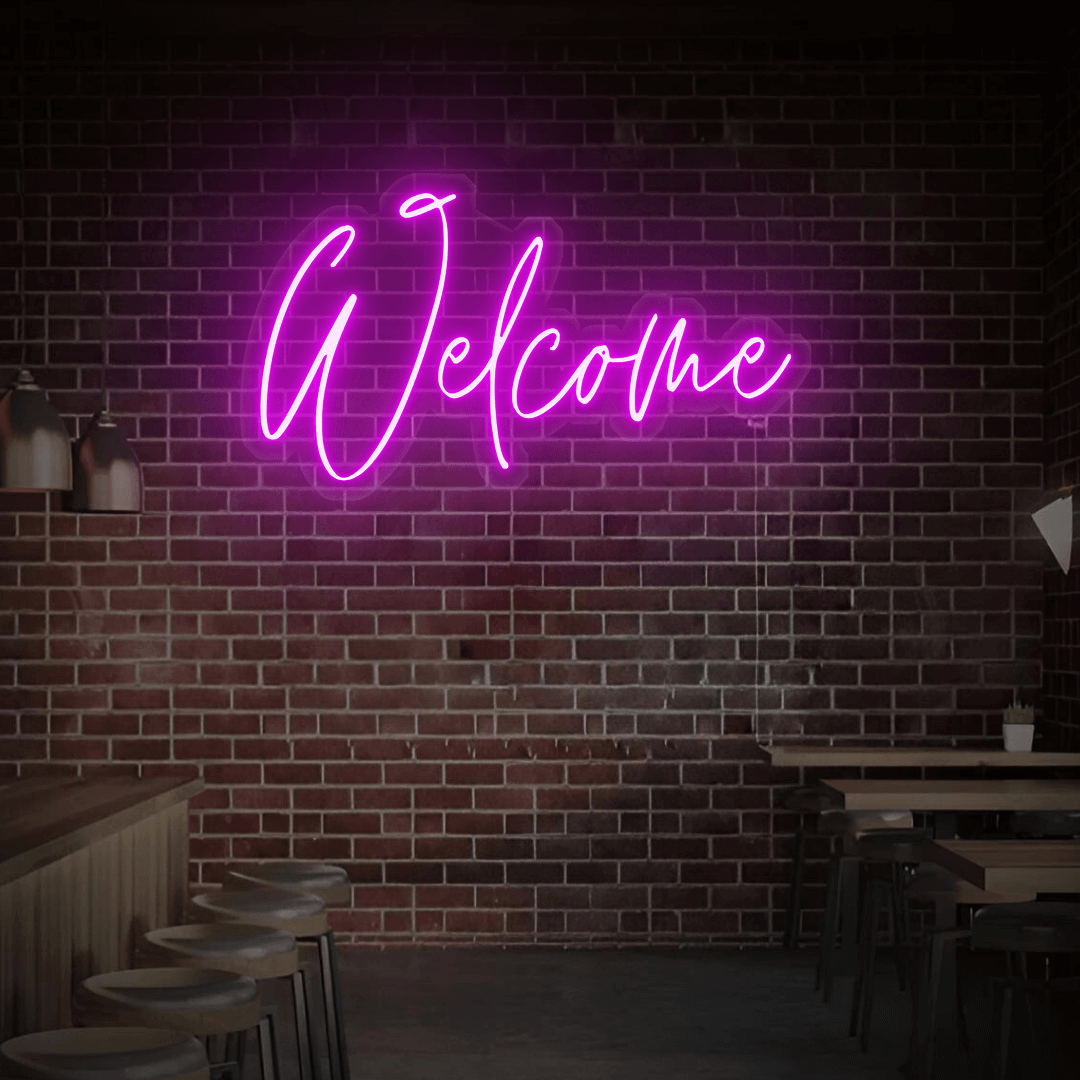Unser beliebtes Neon-Design „Welcome“ ist in vielen Variationen erhältlich. Sollten Sie spezielle Wünsche haben, passen wir Ihr Schild ganz individuell an Ihre Vorstellungen an – für einen einzigartigen Look, der perfekt zu Ihnen passt.